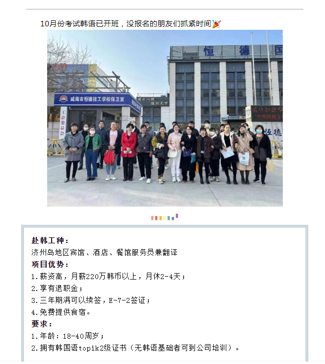 版權所有:山東恒德國際經濟技術合作有限公司 威海恒德職業培訓學校 地址:威海市高區火炬路153號-A 免費熱線:4006150009電話:(韓國部)+86-631-5672008(日本部)+86-631-5672006 (新加坡)+86-631-5672009 (留學部)+86-631-5672011 傳真:+86-631-5672028 郵 編:264209 郵箱:hengdeguoji@163.com51La| 策劃制作:威海雷迅網絡 魯ICP備19060589號 魯公網安備 37100302000191號