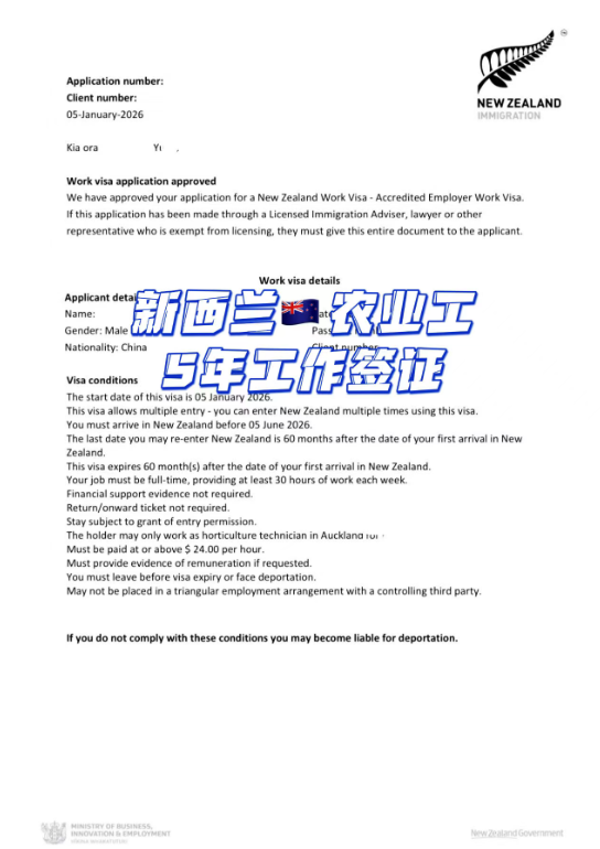 山東恒德國際再傳捷報!新西蘭農(nóng)業(yè)類 5 年工作簽證成功落地,為想要出海就業(yè)的伙伴打通正規(guī)通道!